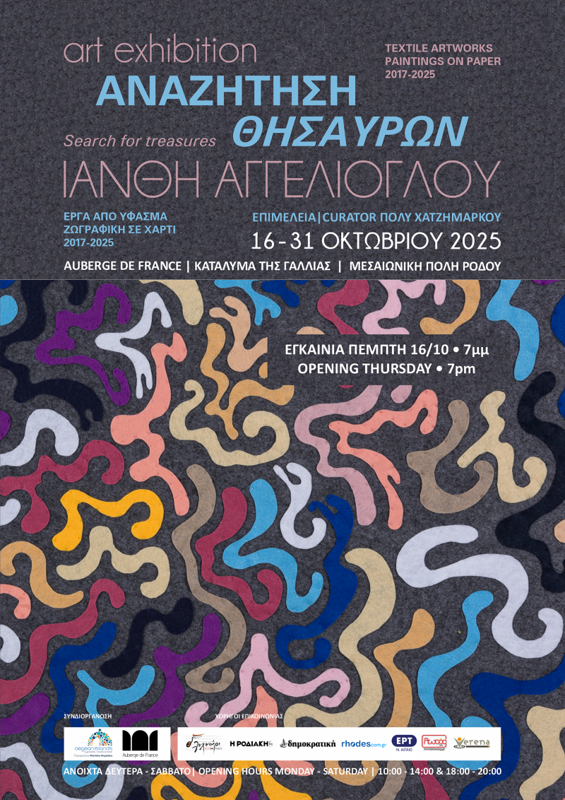Εγκαινιάζεται η Τρίτη ατομική έκθεση της Ιάνθης Αγγελίογλου, με τίτλο “Αναζήτηση Θησαυρών”, στο Κατάλυμα της Γαλλίας στη Μεσαιωνική Πόλη της Ρόδου.