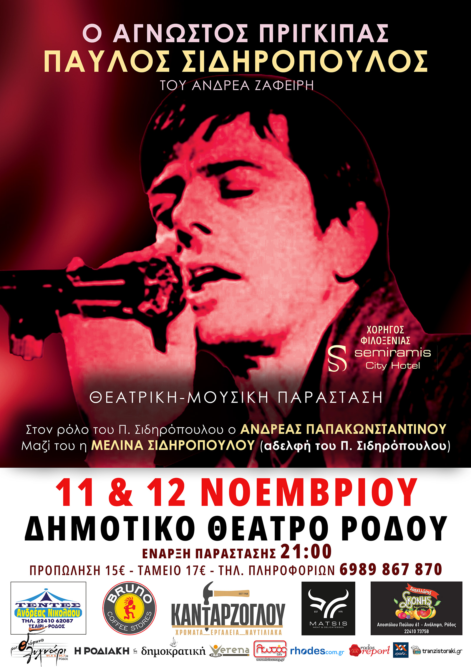 έρχεται για 2 μοναδικές παραστάσεις στην Ρόδο την Τρίτη 11 και την Τετάρτη 12 Νοεμβρίου στο Δημοτικό Θέατρο Ρόδου.