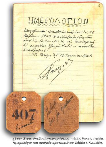 Σάββας Παυλίδης, ο πατέρας μου. Πολιτικός εξόριστος στην Ponza της Ιταλίας, για την συμμετοχή του στην Εθνική Αντίσταση στην Ιταλοκρατούμενη Δωδεκάνησο. Κάποια στιγμή αποφασίζει να κρατήσει ένα ημερολόγιο. Παρακάτω αντιγράφω αποσπάσματα που αναφέρονται στην 25η Μαρτίου 1943. Θα ακολουθήσει η δίκη στο Στρατοδικείο και η μεταφορά του μαζί με τους συντρόφους τους στην Ponza. Ο 15 ημερών “Κωστάκης” δεν είναι άλλος απο τον υπογράφοντα το μπλογκ αυτό. Το πώς κατέληξα Ευάγγελος είναι άλλη ιστορία. Ο πατερας μου δεν με είδε και δεν τον είδα παρά μόνο μετά το τέλος του πολέμου και τον επαναπατρισμό του, όταν πιά είμουν σχεδόν 3 χρονών.