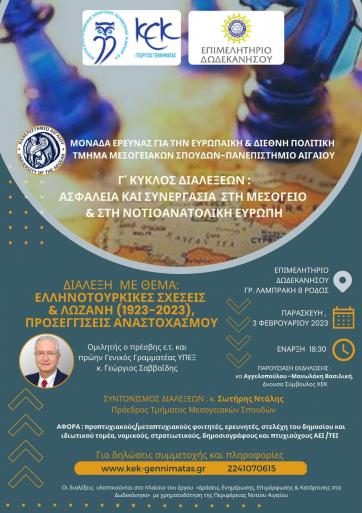 3ος Κύκλος Διαλέξεων «ΑΣΦΑΛΕΙΑ ΚΑΙ ΣΥΝΕΡΓΑΣΙΑ ΣΤΗ ΜΕΣΟΓΕΙΟ & ΣΤΗ ΝΟΤΙΟΑΝΑΤΟΛΙΚΗ ΕΥΡΩΠΗ»