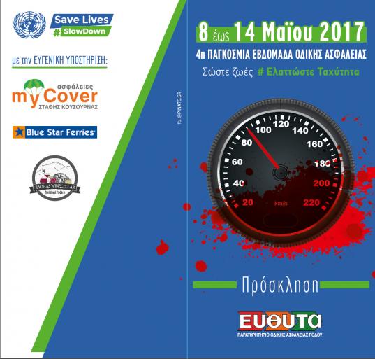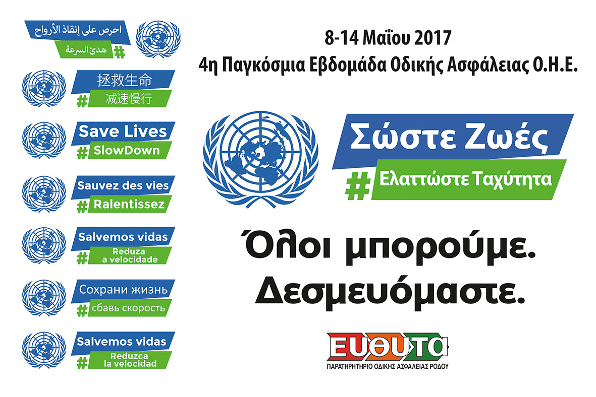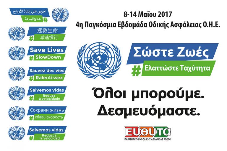 4η Παγκόσμια Εβδομάδα Οδικής Ασφάλειας του ΟΗΕ 8-14 Μαΐου 2017 - Σώστε Ζωές #ΕλαττώστεΤαχύτηταSaveLives #SlowDown