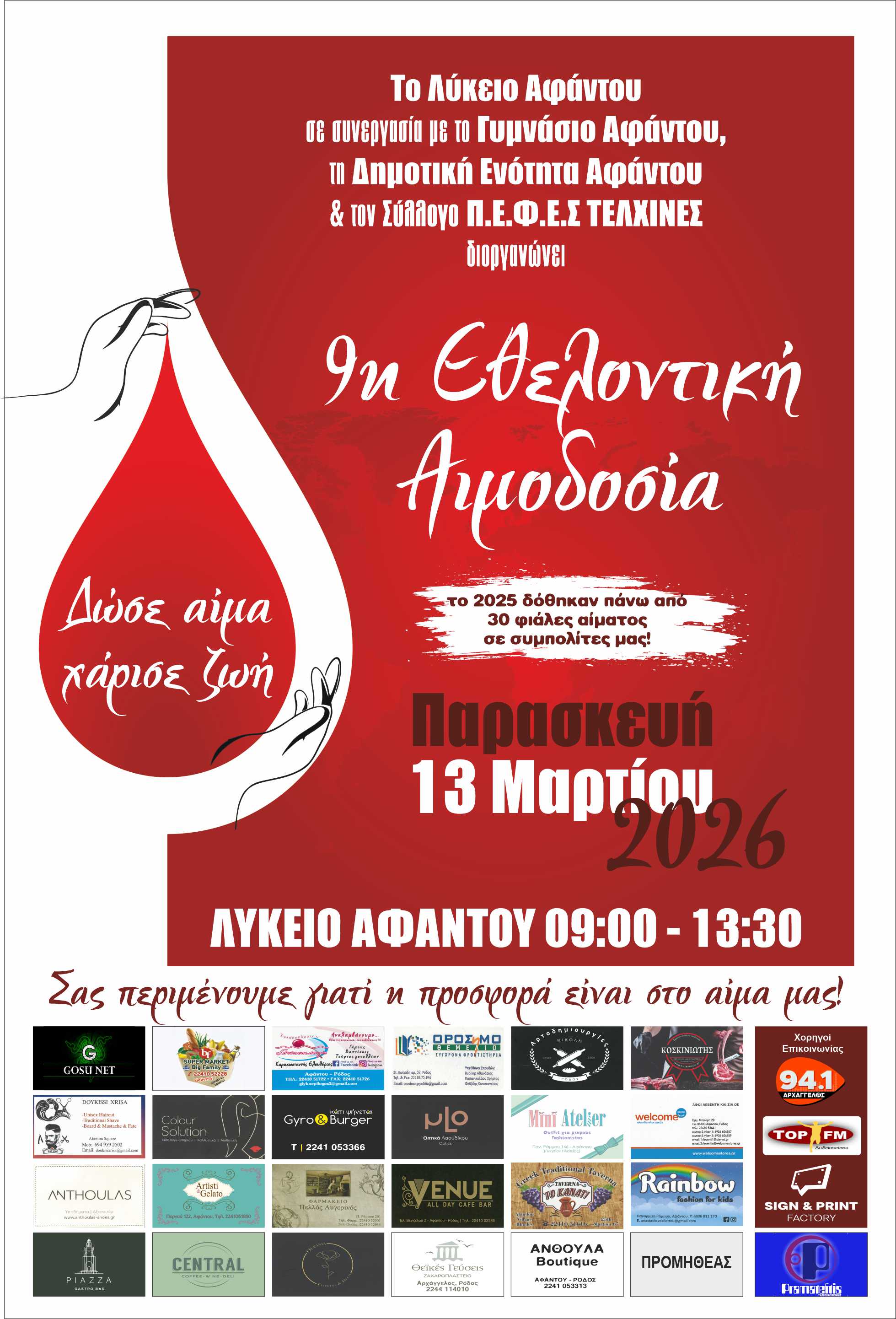 9η ΕΘΕΛΟΝΤΙΚΗ ΑΙΜΟΔΟΣΙΑ ΤΟΥ ΓΕΛ ΑΦΑΝΤΟΥ