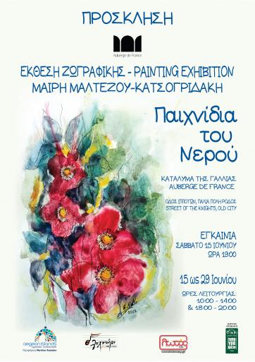 και την ευγενική υποστήριξη της Γαλλικής Προξενικής Αρχής,φιλοξενεί την έκθεση ζωγραφικής της Μαίρης Μαλτέζου-Κατσογριδάκη με τίτλο «Παιχνίδια του Νερού».