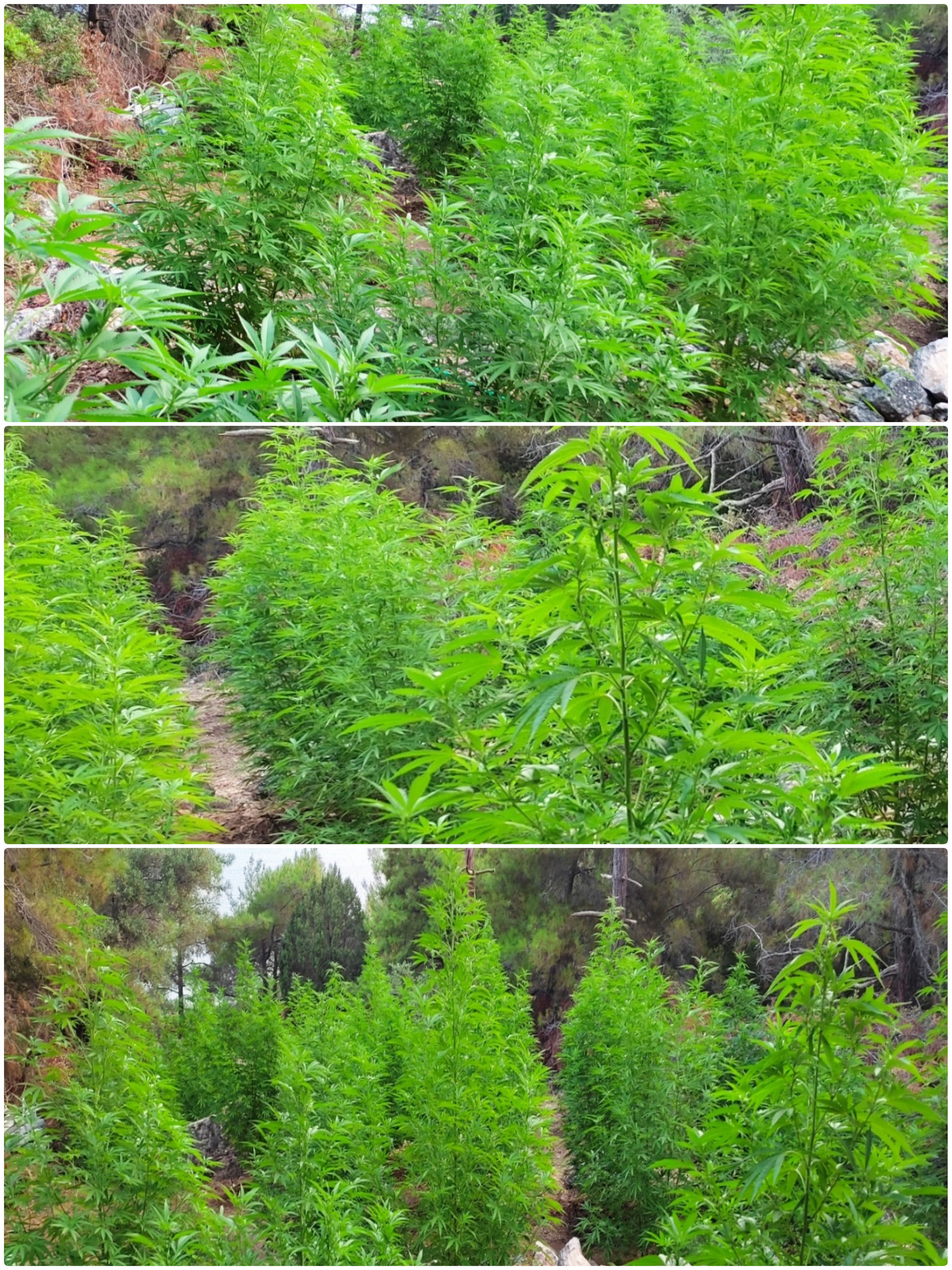 Ειδικότερα, η πρώτη φυτεία αποτελούνταν από τουλάχιστον 51 δενδρύλλια κάνναβης ύψους έως 3,2 μέτρα και ήταν ανεπτυγμένη σε κατάλληλα διαμορφωμένο χώρο απόκρημνης δασικής έκτασης.
