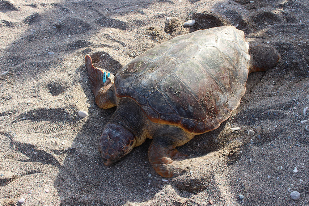 Στις 14 Οκτωβρίου 2017 στην παραλία της Ψαροπούλας στην πόλη της Ρόδου βρέθηκε από ευαισθητοποιημένη συμπολίτισσά μας, μια τραυματισμένη ζωντανή θαλάσσια χελώνα Caretta caretta. Η νεαρή χελώνα έφερε τρία αγκίστρια στο στόμα, καθώς και πολλαπλές περιφερειακές εκδορές στα πτερύγια. Στη συνέχεια μεταφέρθηκε από το προσωπικό του Υδροβιολογικού Σταθμού Ρόδου στις εγκαταστάσεις του Σταθμού.