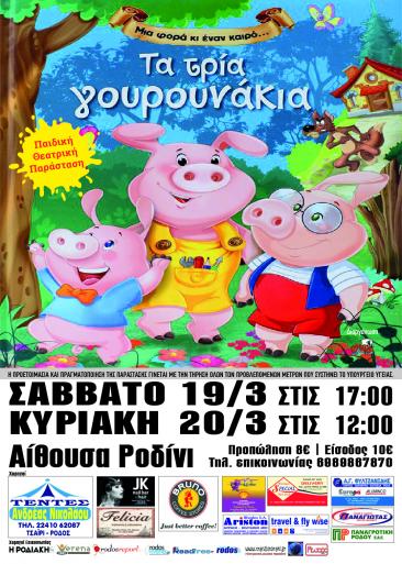 H παιδική θεατρική παράσταση «Τα τρία γουρουνάκια» στη Ρόδο!!