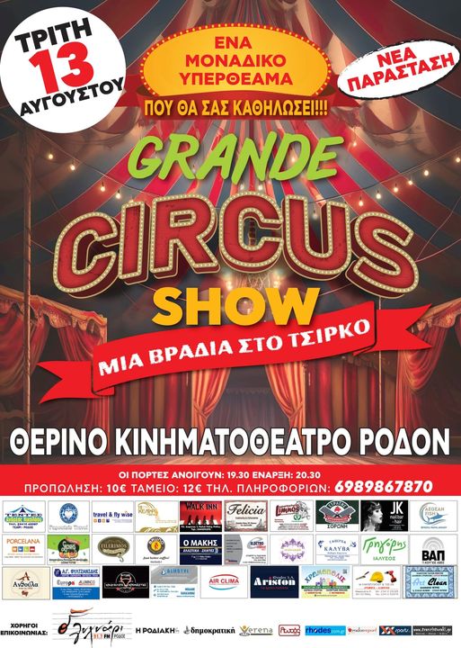 Mετά από την μεγάλη επιτυχία και μετά από δική σας απαίτηση ,η παράσταση GRANDECIRCUSSHOW θα παρουσιαστεί ξανά ,την