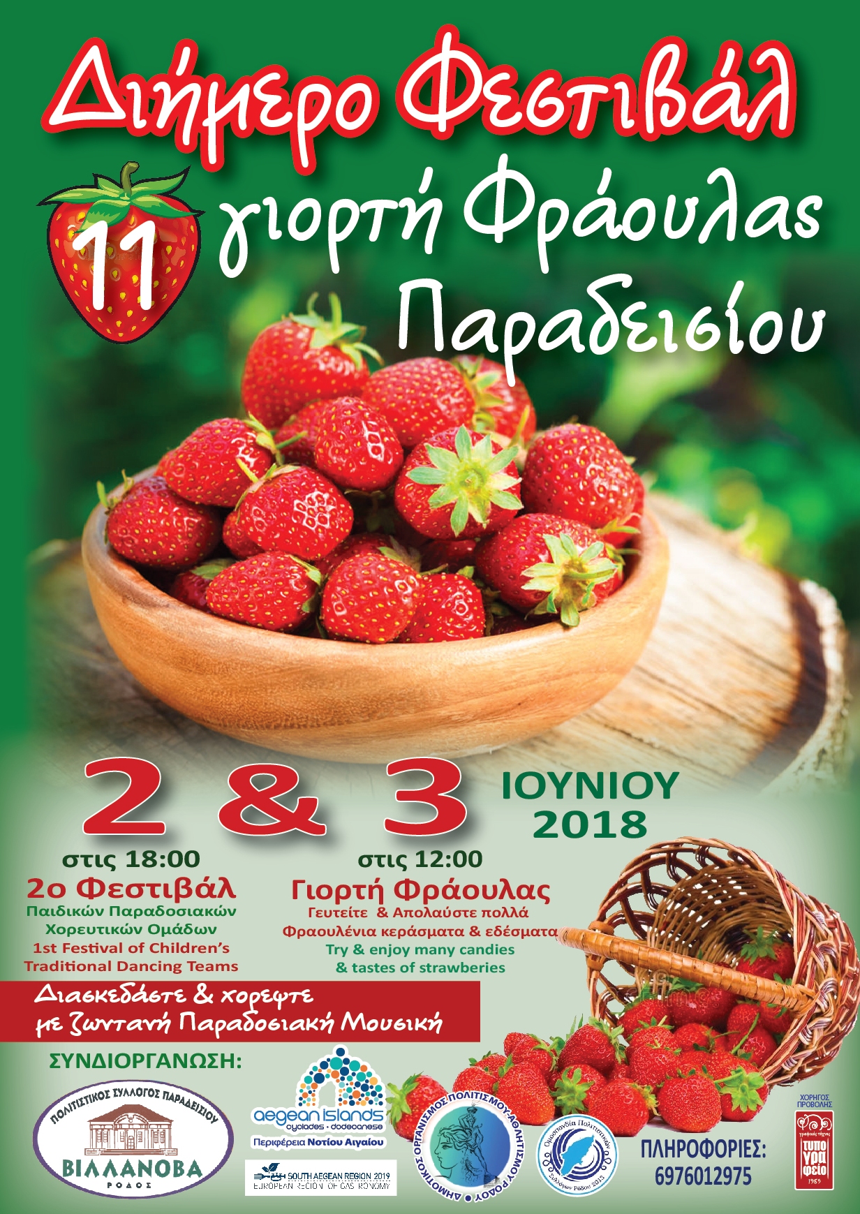 ΔΕΛΤΙΟ ΤΥΠΟΥ-ΘΕΜΑ: ΔΙΕΞΑΓΩΓΗ 11ης ΓΙΟΡΤΗΣ ΦΡΑΟΥΛΑΣ ΠΑΡΑΔΕΙΣΙΟΥ -Ο ΠΟΛΙΤΙΣΤΙΚΟΣ ΣΥΛΛΟΓΟΣ ΠΑΡΑΔΕΙΣΙΟΥ<<ΒΙΛΛΑΝΟΒΑ>> ΣΑΣ ΠΡΟΣΚΑΛΕΙ ΣΤΗΝ 11Η ΓΙΟΡΤΗ ΦΡΑΟΥΛΑΣ ΤΟ ΣΑΒΒΑΤΟ 2 ΙΟΥΝΙΟΥ ΚΑΙ ΩΡΑ 18:00 ΟΠΟΥ ΘΑ ΠΡΑΓΜΑΤΟΠΟΙΗΘΕΙ ΤΟ 2ο ΠΑΙΔΙΚΟ ΦΕΣΤΙΒΑΛ ΧΟΡΟΥ ΓΙΑ ΝΑ ΕΡΘΟΥΝ ΤΑ ΠΑΙΔΙΑ ΠΟΙΟ ΚΟΝΤΑ ΣΤΙΣ ΠΑΡΑΔΟΣΕΙΣ ΜΑΣ ΚΑΙ ΚΥΡΙΑΚΗ 3 ΙΟΥΝΙΟΥ 2018 ΚΑΙ ΩΡΑ 12:00 ΤΟ ΜΕΣΗΜΕΡΙ ΣΤΟ ΠΡΟΑΥΛΙΟ ΧΩΡΟ ΤΟΥ ΓΥΜΝΑΣΙΟΥ ΠΑΡΑΔΕΙΣΙΟΥ (ιερά μονή Αγίας Μαρίνας) , ΘΕΛΟΝΤΑΣ ΝΑ ΠΡΟΒΑΛΛΕΙ ΤΟΝ ΠΡΩΤΟΓΕΝΗ ΤΟΜΕΑ,ΤΗΝ ΝΤΟΠΙΑ ΠΑΡΑΓΩΓΗ ΦΡΑΟΥΛΑΣ ΠΟΥ ΚΑΛΛΙΕΡΓΕΙΤΕ ΣΤΗΝ ΠΕΡΙΟΧΗ ΜΑΣ. ΟΙ ΕΠΙΣΚΕΠΤΕΣ ΘΑ ΕΧΟΥΝ ΤΗΝ ΕΥΚΑΙΡΙΑ ΝΑ ΓΕΥΤΟΥΝ ΔΙΑΦΟΡΑ ΕΔΕΣΜΑΤΑ ΑΠΟ ΦΡΑΟΥΛΑ ΚΑΙ ΝΑ ΑΠΟΛΑΥΣΟΥΝ ΠΑΡΑΔΟΣΙΑΚΟΥΣ ΧΟΡΟΥΣ ΑΠ’ΟΛΗ ΤΗΝ ΕΛΛΑΔΑ ΠΟΥ ΘΑ ΠΑΡΟΥΣΙΑΣΟΥΝ ΣΥΛΛΟΓΟΙ ΤΟΥ ΝΗΣΙΟΥ ΜΑΣ ΚΑΙ ΑΠΟ ΤΗΝ ΚΡΗΤΗ. ΘΑ ΑΚΟΛΟΥΘΗΣΕΙ ΜΕΓΑΛΟ ΓΛΕΝΤΙ ΜΕ ΠΑΡΑΔΟΣΙΑΚΗ ΚΑΙ ΛΑΪΚΗ ΟΡΧΗΣΤΡΑ ΚΑΙ ΤΙΣ ΔΥΟ ΜΕΡΕΣ. ΣΑΣ ΠΕΡΙΜΕΝΟΥΜΕ ΟΛΟΥΣ ΓΙΑ ΠΟΛΥ ΦΡΑΟΥΛΑ!!!!