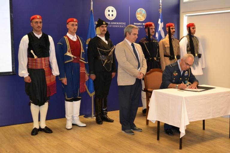 Ακολούθησε με πολλή συγκίνηση η υπογραφή του σχετικού Πρακτικού, εκ μέρους της Πολιτιστικής Ομάδας “Αρχιπέλαγος” από τον κ. Παπαδόπουλο και εκ μέρους του Στρατιωτικού Γραφείου από τον Αντιπτέραρχο (Ι) κ. Γρηγόρη Πρεζεράκο.