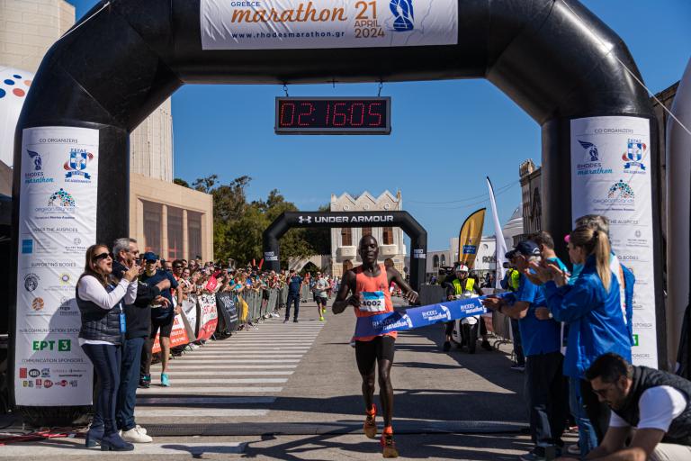 O Κενυάτης Μόουζες Κίπτοο Κούργκατ, με ρεκόρ διαδρομής, ήταν ο νικητής του 9ου Διεθνούς Μαραθωνίου Ρόδου, που πραγματοποιήθηκε σήμερα στο «νησί των Ιπποτών».