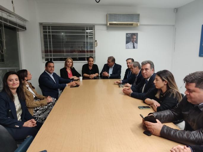 Τους υποδέχθηκε η Πρόεδρος της ΔΕΕΠ ΔΩΔΕΚΑΝΗΣΟΥ ΝΔ Έφη Χαραλαμποπούλου και στη συζήτηση που ακολούθησε,την οποία συντόνισε η Πρόεδρος, παρόντες ήταν ο Υφυπουργός Ναυτιλίας και Νησιωτικής Πολιτικής-Βουλευτής Δωδεκανήσου Γιάννης Παππάς, οι Βουλευτές Δωδεκανήσου Μάνος Κόνσολας, Μίκα Ιατριδη ,εκπρόσωπος του Γραφείου του Βασίλη Υψηλάντη ,ο Πολιτευτής με τη ΝΔ Αντώνης Γιαννικουρής, η Πρόεδρος της ΟΝΝΕΔ Δωδεκανήσου Βιβή Παπαδοπούλου , τα μέλη της ΔΕΕΠ ΔΩΔΕΚΑΝΗΣΟΥ ΝΔ Kώστας Γλεντής (υπεύθυνος παραγωγικών και επιστημονικών φορέων ),ο Γιώργος Πάγκαλης(μέλος),ο υπεύθυνος του Τομέα Υγείας της ΔΕΕΠ ΔΩΔΕΚΑΝΗΣΟΥ ΝΔ,Πρόεδρος της ΑΜΚΕ ΓΑΛΗΝΟΣ και Περιφερειακός Σύμβουλος της ΠΝΑΙ ιατρός Μάριος Κλωνάρης, ο υπεύθυνος εκλογικών αντιπροσώπων της ΔΕΕΠ ΔΩΔΕΚΑΝΗΣΟΥ ΝΔ και Πρόεδρος της Διοικούσας Επιτροπής ΚΥ Ρόδου,Σύμης και ΠΠΙ Τήλου και Καστελορίζου Γιάννης Βασιλάκης ,ο Κωνσταντίνος Τρέχας (Υπεύθυνος του Τομέα Πολιτισμού)