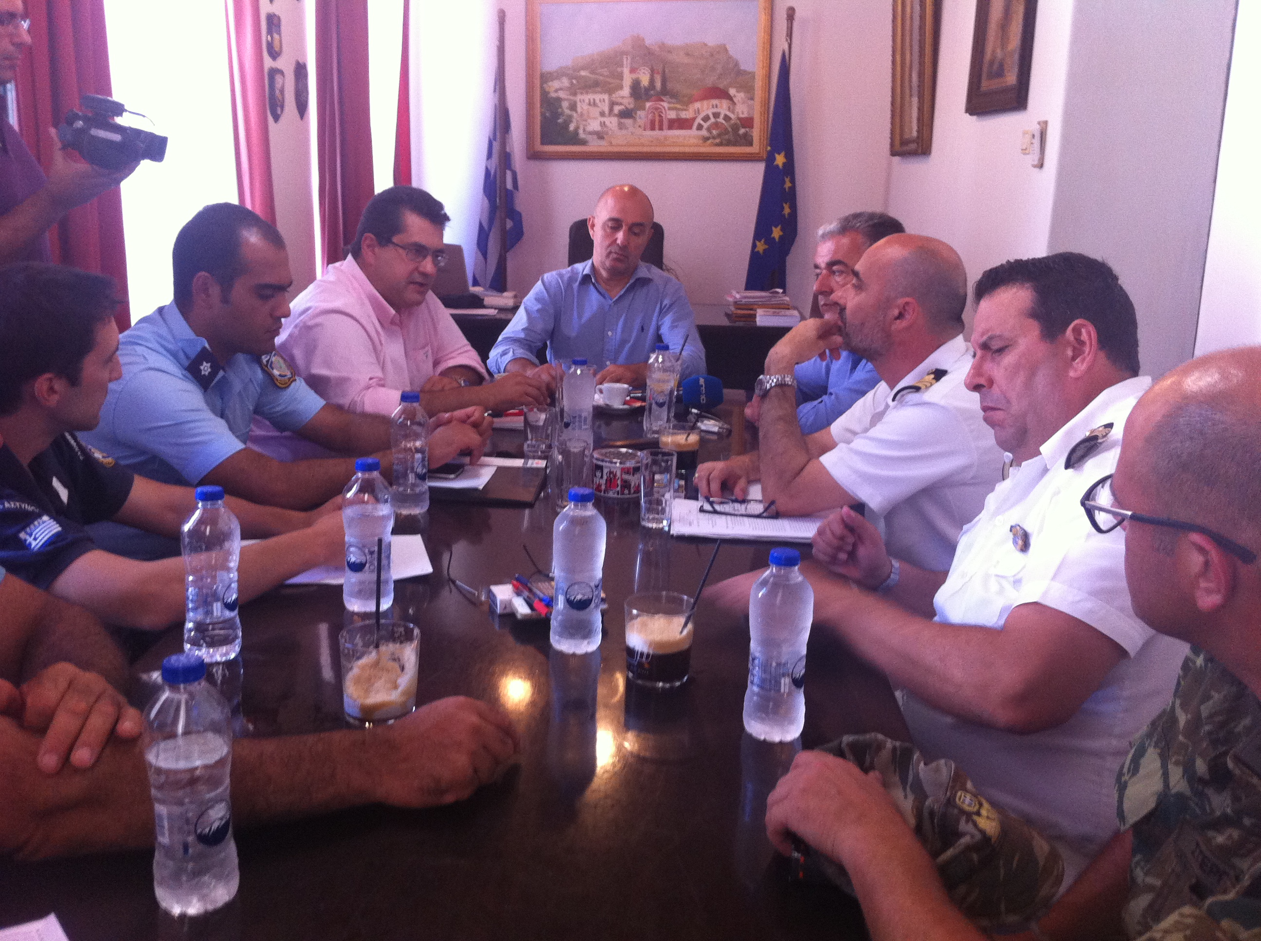 Επίσης είχε συνάντηση με τον Σεβασμιώτατο Μητροπολίτη Λέρου, Καλύμνου και Αστυπάλαιας κκ. Παΐσιο, του οποίου εξήρε το έργο. Συναντήθηκε ακόμη με τον Υφυπουργό Εθνικής Αμύνης κ. Λαμπρόπουλο και τον Γ.Γ. της Αποκεντρωμένης Διοίκησης Αιγαίου κ. Σπύρου Σπυρίδωνα που εκπροσώπησαν την κυβέρνηση, από τους οποίους ζήτησε την στήριξη της πολιτείας για την επίλυση των προβλημάτων που αντιμετωπίζουν τα νησιά μας.