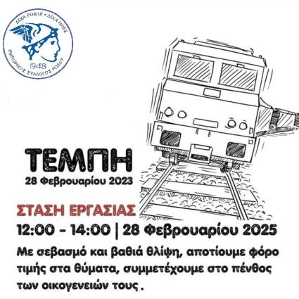 Το Σωματείο Ιδιωτικών Υπαλλήλων Ρόδου καλεί στη συγκέντρωση των Τεμπών στην πλατεία δημαρχείου Ρόδου
