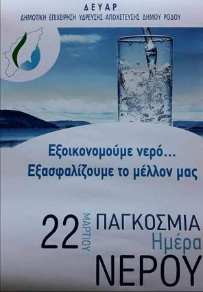 Εκδηλώσεις με θέμα: «Εξοικονομούμε νερό, εξασφαλίζουμε το μέλλον μας», διοργανώνει η Δημοτική Επιχείρηση Ύδρευσης Αποχέτευσης Ρόδου (ΔΕΥΑΡ), στο πλαίσιο του ...