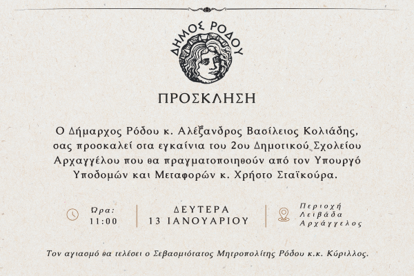Ο Δήμαρχος Ρόδου Αλέξανδρος Κολιάδης σας προσκαλεί ...