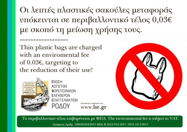 Με βάση την απόφαση με Αριθμό 180036/952/2017 (ΦΕΚ Β 2812/10.8.2017) από την 1/1/2018 οι επιχειρήσεις υποχρεούνται να εισπράττουν και να αποδίδουν ειδικό περιβαλλοντικό τέλος, ανά τεμάχιο ...