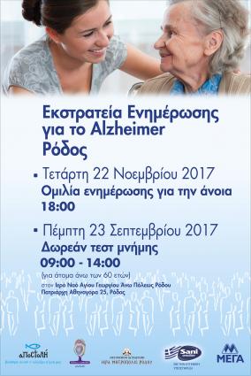 ΔΕΛΤΙΟ ΤΥΠΟΥ-Δωρεάν τεστ μνήμης και ενημερωτική ομιλία για την άνοια στη Ρόδο από το ΚΑΡΕΛΛΕΙΟ-ΜΟΝΑΔΑ ALZHEIMER του Φιλανθρωπικού Οργανισμού «ΑΠΟΣΤΟΛΗ» της Ιεράς Αρχιεπισκοπής ...