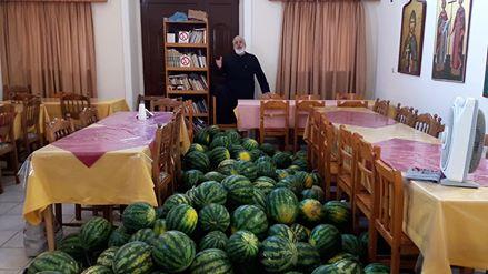 Δυο τόνοι καρπούζια δόθηκαν σήμερα Κυριακή 18/6/17 μετά το πέρας της θείας λειτουργίας στον Άγιο Παντελεήμονα σε πολίτες που αντιμετωπίζουν οικονομικά προβλήματα.