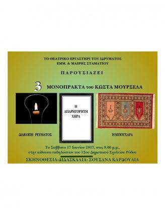 Το Ίδρυμα Υποτροφιών Εμμ. και Μαίρης Σταματίου, στο πλαίσιο της προσπάθειάς του, μέσω των εργαστηρίων του, να συμβάλει στο πολιτιστικό γίγνεσθαι της Ρόδου, ...