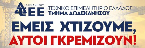 ΔΕΛΤΙΟ ΤΥΠΟΥ=«ΔΥΝΑΜΙΚΗ ΣΥΜΜΕΤΟΧΗ ΤΩΝ ΜΗΧΑΝΙΚΩΝ ΤΗΣ ΔΩΔΕΚΑΝΗΣΟΥ ΣΤΗΝ ΑΠΕΡΓΙΑΚΗ ΚΙΝΗΤΟΠΟΙΗΣΗ ΤΗΣ 17ΗΣ ΜΑΪΟΥ»