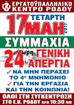 -24ωρη ΓΕΝΙΚΗ ΑΠΕΡΓΙΑ 17 ΜΑΗ 2017