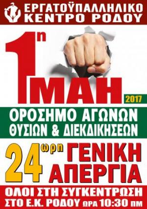 Το Εργατοϋπαλληλικό Κέντρο Ρόδου τίμησε, όπως άξιζε στους αγώνες της εργατικής τάξης, την Εργατική Πρωτομαγιά. Έξω από το ...