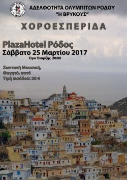 Η Αδελφότητα Ολυμπιτών Ρόδου "Η ΒΡΥΚΟΥΣ" σας προσκαλεί στην ετήσια χοροεσπερίδα της, το Σάββατο 25/3/2017 και ώρα 8:00 το βράδυ στην αίθουσα του ξενοδοχείου Πλάζα, για να ...