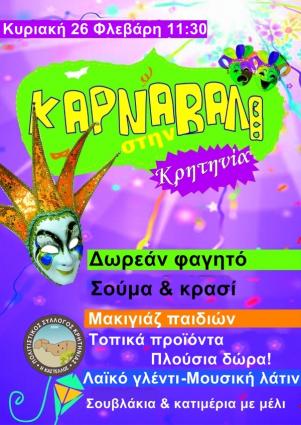 Το καρναβάλι Κρητηνίας ξεκίνησε δειλά δειλά το 1995 και τείνει πλέον να γίνει θεσμός αφού κάθε χρόνο αρκετός κόσμος από όλο το νησί παρευρίσκεται σε αυτό και διασκεδάζει με τη ...