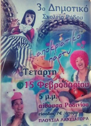 Ο Σύλλογος Γονέων & Κηδεμόνων του 3ου Δημοτικού Σχολείου (Βενετόκλειο) διοργανώνει αποκριάτικο πάρτι για την ενίσχυση των δραστηριοτήτων του σχολείου και του συλλόγου μας.