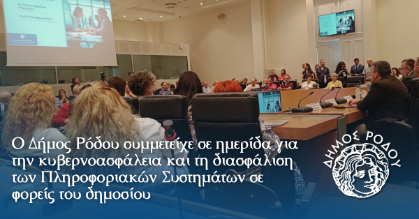 Ο δήμος Ρόδου συμμετείχε σε ημερίδα για την κυβερνοασφάλεια και τη διασφάλιση των Πληροφοριακών Συστημάτων σε φορείς του δημοσίου