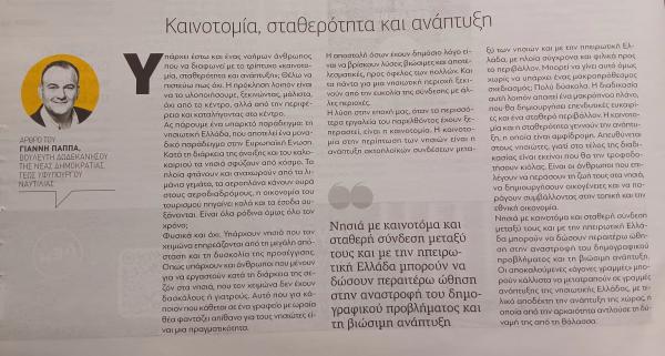 Άρθρο μου στην εφημερίδα Παραπολιτικά.