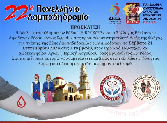 Η Αδελφότητα Ολυμπιτών Ρόδου «Η ΒΡΥΚΟΥΣ» και ο Σύλλογος Εθελοντών Αιμοδοτών Ρόδου «Άγιος Εφραίμ» σας προσκαλούν στην τελετή Αφής της Φλόγας της ...