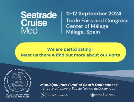Το Δημοτικό Λιμενικό Ταμείο Νότιας Δωδεκανήσου συμμετέχει στο Seatrade Cruise Med 2024 στη Μάλαγα της Ισπανίας.