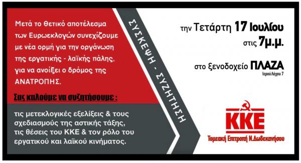 Η Τομεακή Επιτροπή Νότιας Δωδεκανήσου του ΚΚΕ θα πραγματοποιήσει την Τετάρτη 17 Ιουλίου στο ξενοδοχείο ΠΛΑΖΑ και ώρα 7 μ.μ. σύσκεψη-συζήτηση για ...