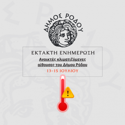 Ο Δήμος Ρόδου ενημερώνει τους πολίτες ότι, λόγω του καύσωνα από σήμεραΣάββατο 13 Ιουλίου έως και τη ...
