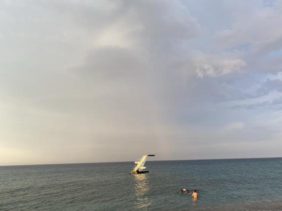 Απόκοσμη ήταν η εικόνα πριν από λίγο, στην παραλία "Ελλη" απο την αλλαγή, πρόσκαιρη, του καιρού. Υδροστρόβιλος, βροντές, αστραπές και βροχή μαζί με παιδιά πάνω στο ραμπολίνο που ...