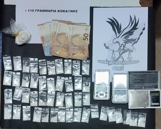 Κατασχέθηκαν 110 γραμμάρια κοκαΐνης, 5 ζυγαριές ακριβείας, 400€ κ.α.