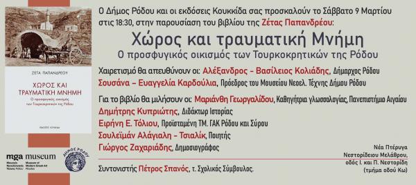 Παρουσίαση του βιβλίου της Ζέτας Παπανδρέου «Χώρος και τραυματική μνήμη. Ο προσφυγικός οικισμός των Τουρκοκρητικών της Ρόδου»