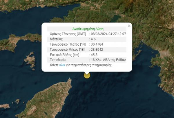 Σεισμική δόνηση μεγέθους 4,6 ρίχτερ πραγματοποιήθηκε το πρωί της Παρασκευής 8/3/2024 σε θαλάσσια ...