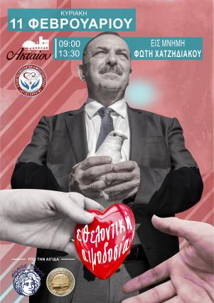 Ο Σύλλογος Εθελοντών Αιμοδοτών Ρόδου τιμά τη μνήμη του Φώτη Χατζηδιάκου με μια εθελοντική αιμοδοσία την Κυριακή 11 Φεβρουαρίου 2024 στο ΑΚΤΑΙΟΝ, ημέρα που θα τελεστή στον ...