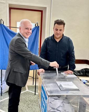 Σε εκλογικό κέντρο της Μεσαιωνικής Πόλης ψήφισε νωρίτερα ο υποψήφιος δήμαρχος Ρόδου Νϊκος Γερονικόλας. Εξερχόμενος εκανε μια σύντομη δήλωση: "Σήμερα ψηφίζουμε με το χέρι ...
