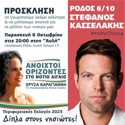 Την Παρασκευή στη Ρόδο ο Στέφανος Κασσελάκης στηρίζοντας την παράταξη «Ανοιχτοί Ορίζοντες στο Νότιο ...