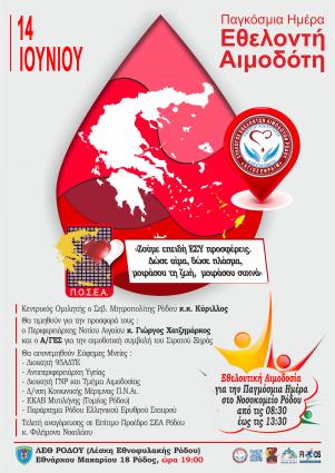 «Ζούμε επειδή ΕΣΥ προσφέρεις - Δώσε αίμα, δώσε πλάσμα, μοιράσου τη ζωή, μοιράσου συχνά»