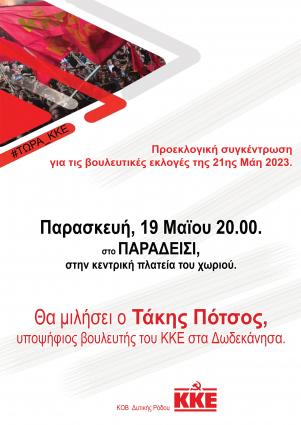 Προεκλογική συγκέντρωση του ΚΚΕ θα γίνει την Παρασκευή στις 19 Μαΐου,