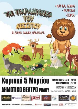 Την Κυριακή 05 Μαρτίου για 2 μοναδικές παραστάσεις στο Δημοτικό Θέατρο Ρόδου στις 12.00 και στις 17.00