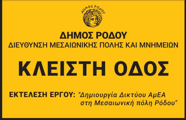 Θέμα: Διακοπή κυκλοφορίας στην οδό Ιπποδάμου στη Μεσαιωνική πόλη Ρόδου λόγω εκτέλεσης έργου με τίτλο: “Δημιουργία δικτύου ΑμΕΑ”.