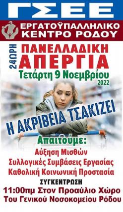 - «9 Νοεμβρίου ώρα 11:00 συμμετέχουμε ΟΛΟΙ στην συγκέντρωση του ΕΚΡ για την 24ωρη απεργία της ΓΣΕΕ »