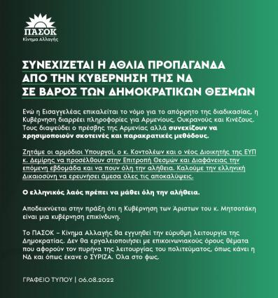 Δελτίο Τύπου ΠΑΣΟΚ - Κίνημα Αλλαγής (6-8-2022)