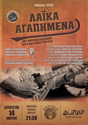 -Στο πλαίσιο των πολιτιστικών εκδηλώσεων ΙΑΛΥΣΙΑ 2022, την Πέμπτη 14 Αυγούστου 2022 και ώρα 21:30, στην κεντρική πλατεία της Δημοτικής Ενότητας Ιαλυσού, ο ...