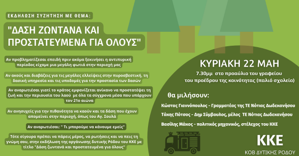 - Η κομματική οργάνωση δυτικής Ρόδου του ΚΚΕ, οργανώνει εκδήλωση με θέμα “Δάση ...
